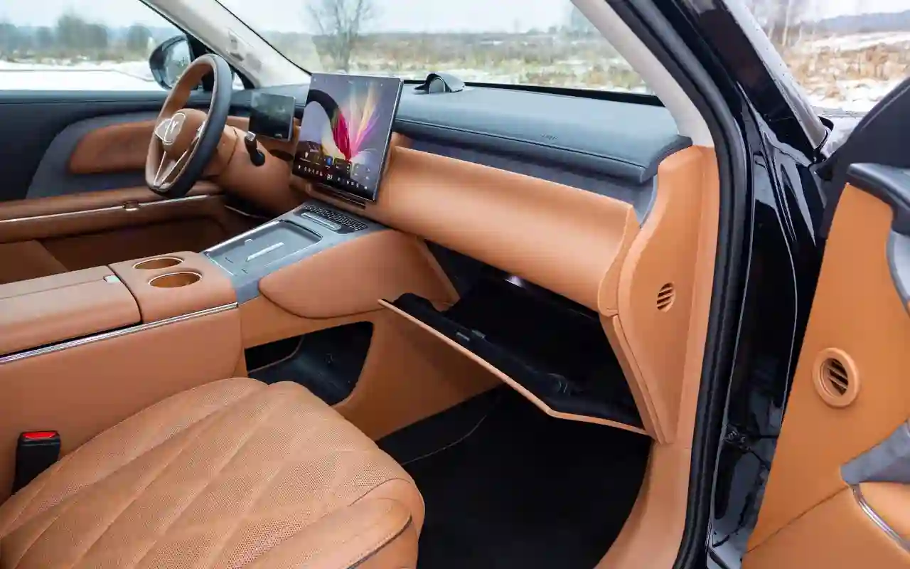 Благодаря 800-вольтовой архитектуре VOYAH TAISHAN на зарядку батареи емкостью 65 кВт·ч от сверхбыстрой станции мощностью 320 кВт с 20 до 80% уходит всего 12 минут. Жаль, что на деле российские зарядные станции в большинстве своем готовы выдавать до 120 кВт. Как бы то ни было, и по экономичности, и по динамике, и по запасу хода TAISHAN реально удивляет: заявленная «дальнобойность» — 1120 км по циклу WLTP. Но не будем так громко завидовать!